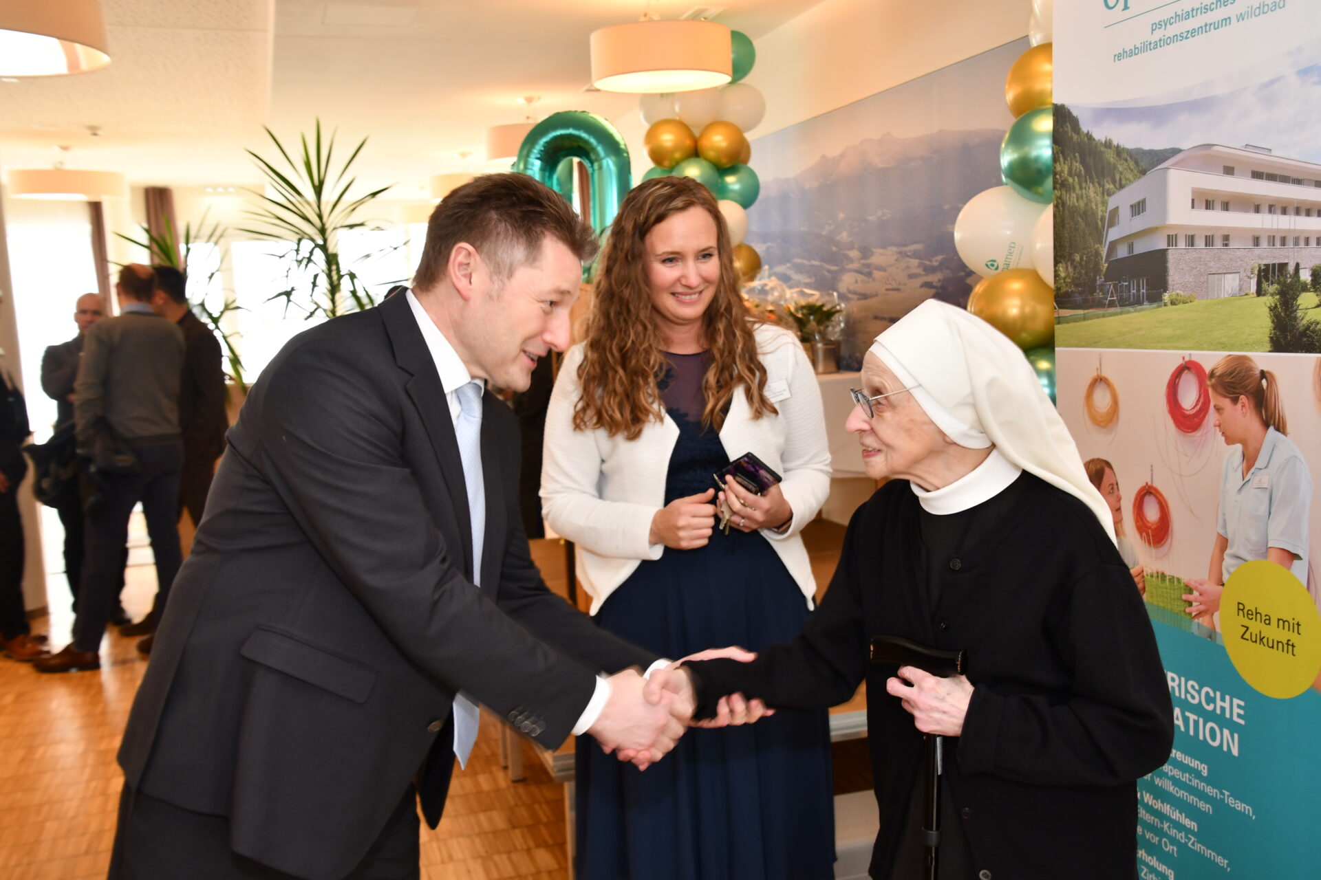 Den Auftakt des Jubiläumstages im OptimaMed Psychiatrischen Rehabilitationszentrum Wildbad bildete ein feierliches Programm, das die vergangenen zehn Jahre in den Mittelpunkt stellte. Die Feierlichkeiten starteten mit einem Empfang und einer musikalischen Begrüßung durch die Bläsergruppe der Musikschule Neumarkt. Beim anschließenden Festakt würdigten zahlreiche Ehrengäste die Entwicklung des Hauses und seine Bedeutung für die Gesundheitsversorgung der Region. Grußworte richteten unter anderem Landesrat Dr. Karlheinz Kornhäusl, Bürgermeister von Neumarkt Josef Maier, CEO der SeneCura Gruppe Anton Kellner, Ärztliche Leitung Prim. Dr. Ulrike Weiß, sowie Verwaltungsdirektorin Sabrina Plank an die Gäste. Ein besonders feierlicher Moment war zudem die Haussegnung durch Generalabt Hochmeister Frank Bayard.