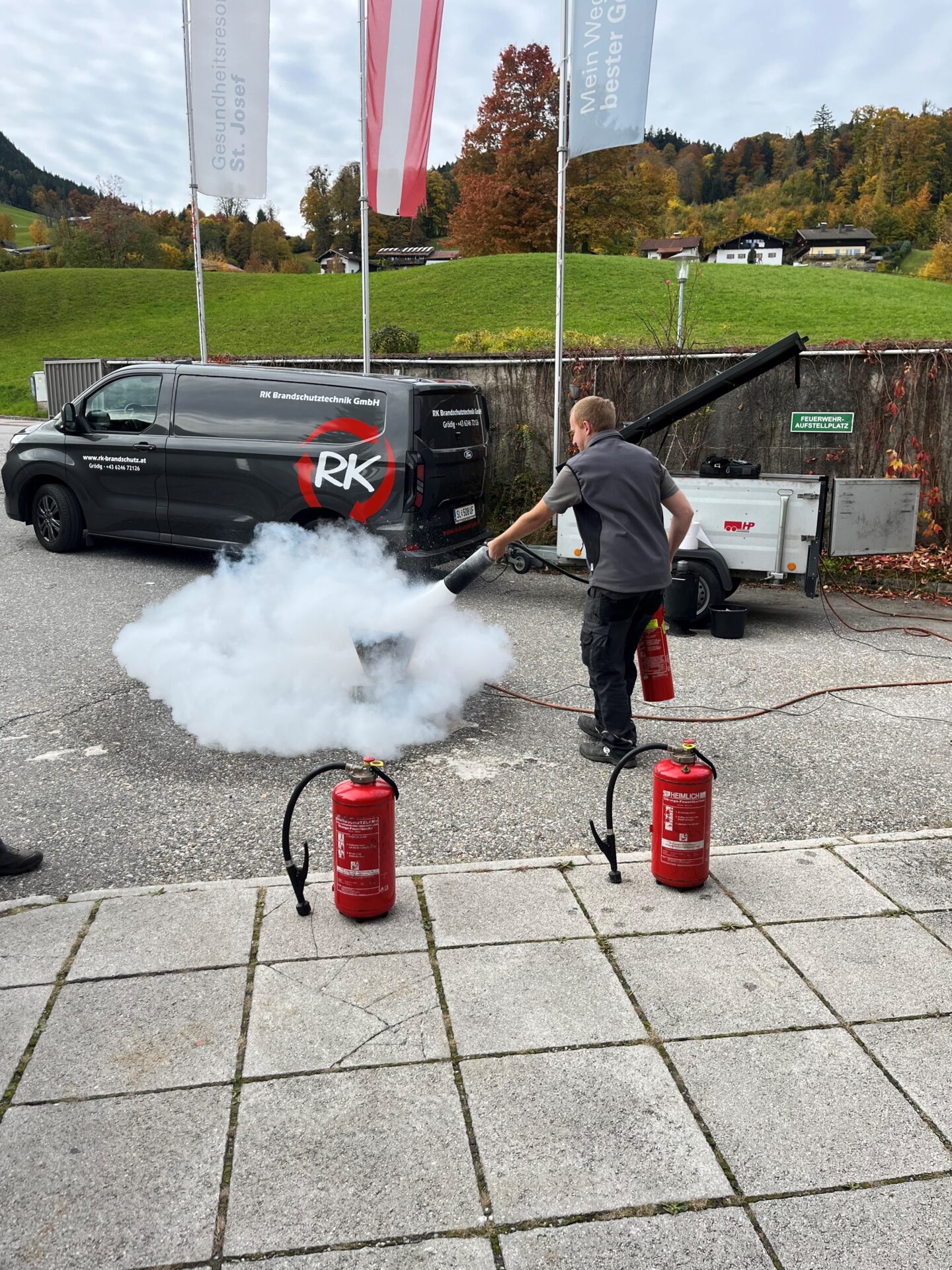 Unter fachkundiger Anleitung wurden theoretische Grundlagen wie Brandentstehung, Brandklassen, Löschmittel und Evakuierungsabläufe vermittelt. Im praktischen Teil konnten die Teilnehmer:innen anschließend den Umgang mit verschiedenen Feuerlöschern selbst erproben und den richtigen Einsatz im Notfall trainieren.