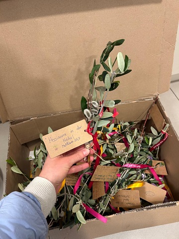 Letzte Woche haben wir im OptimaMed Rehabilitationszentrum für Kinder und Jugendliche in Wiesing gemeinsam Eier in bunten Farben für Ostern gefärbt und beklebt sowie traditionelle Palmbüsche gebunden. Auch beim Gestalten von Ostereiern und Osterhasen aus buntem Karton, die nun unser Haus schmücken, waren alle mit viel Eifer dabei. Die Firmlinge aus Wiesing haben uns ein besonders nettes Geschenk gemacht: Hübsch gebundene Ölzweige und Palmkätzchen mit Kärtchen mit Ostergrüßen. Jetzt kann Ostern kommen!