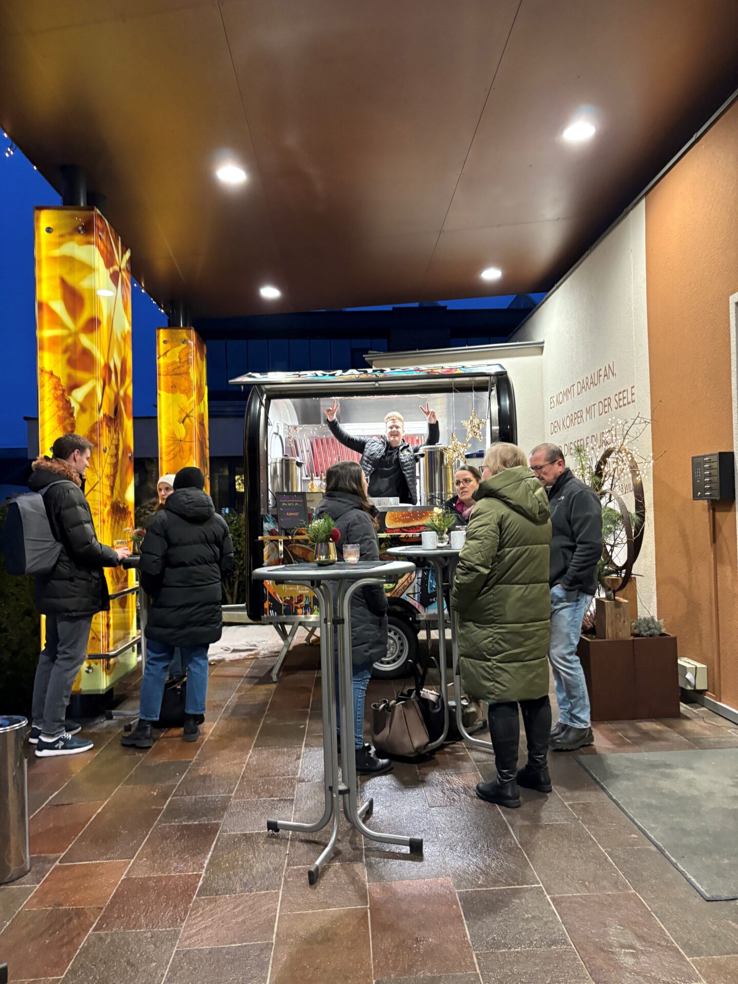Gestern fand wieder unser traditioneller Mitarbeiter:innen-Punschstand im OptimaMed Rehabilitationszentrum Aspach statt. Das Restaurant „Heimatliebe“ verwöhnte uns mit köstlichem Glühwein, Glühmost und wärmendem Apfel-Punsch (mit Lillet).